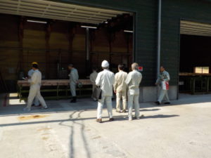 まず初めに、当組合木材加工課長の板垣が工場の概要を説明してから現地の視察を行いました。