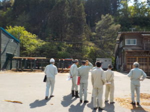 まず初めに、当組合木材加工課長の板垣が工場の概要を説明してから現地の視察を行いました。