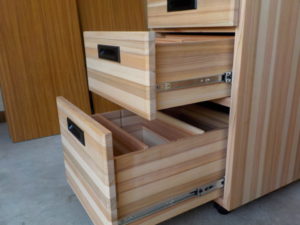 材料には杉集成材を用いており、節のない無垢材のような風合いを出しています。