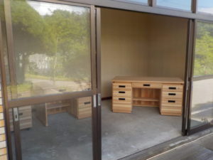 昨年度、各所に収めてご好評いただいた木製事務机のサンプルが完成しましたので、