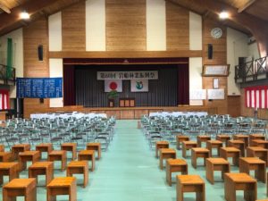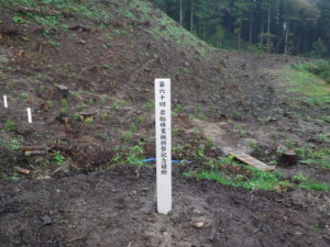 裏方として作業していたため、大事な式典と植樹の様子を撮影することができませんでしたので開場前の式典会場の様子と植樹作業終了後の山林の様子を載せておきます。