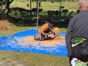 今回は、60回の記念大会ということで式典と植樹作業のほかに記念事業が企画され、木工体験やチェンソーアートの実演が行われ大変盛況でした。