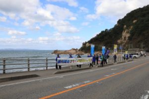 板貝駐車場から桑川弁天駐車場の区間を各集落の方々に協力して頂いて行われました。