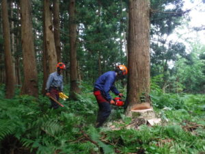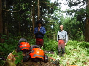 師匠の佐藤さんの指導のもと伐採をさせてもらい
