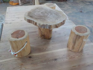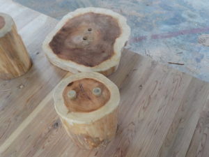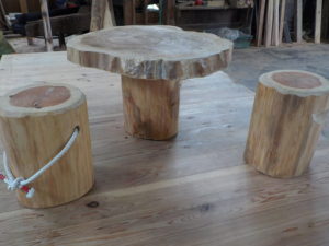 そんな時に、活用していただきたく杉材を使用した丸太テーブルと丸太スツールを試作してみました!!