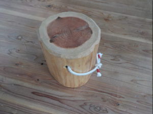 丸太スツールは紐付きタイプと持ち手付きタイプの2種類用意しました。
