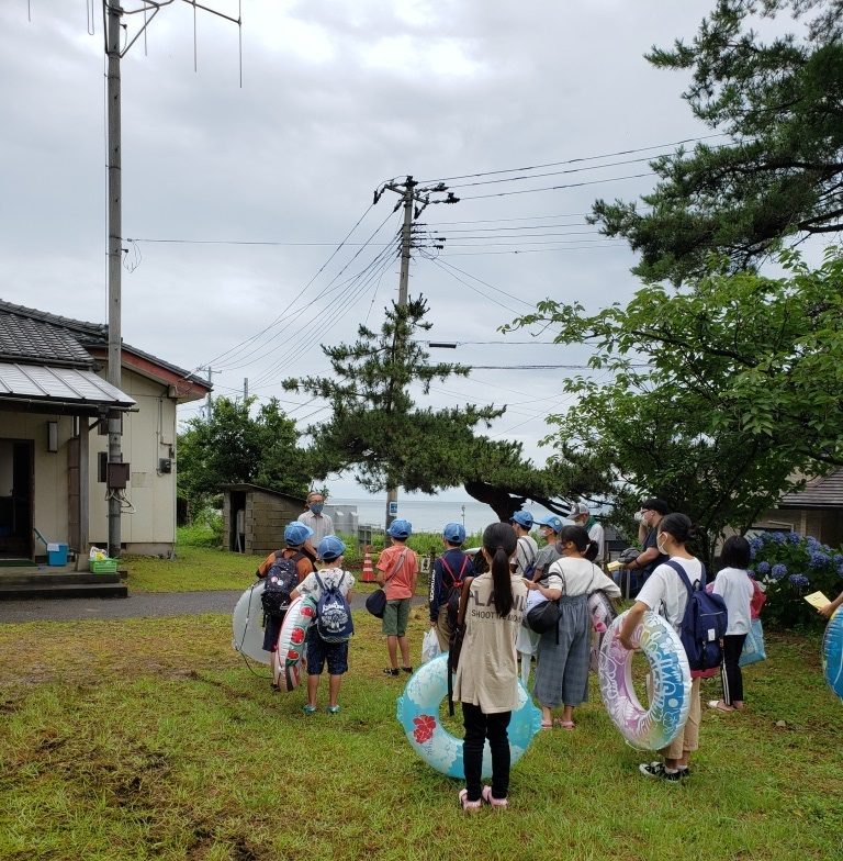 海水浴場に移動してからは、各班に分かれて海水浴を行い、3密をなるべく避け、新しい生活様式を意識することを心がけて活動をしました。