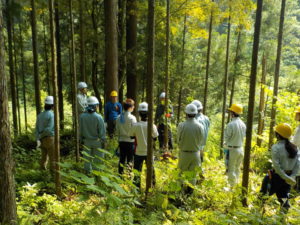 山林で行われました。木村参事より枝打ち・間伐作業の時期や作業内容等の説明をしました。
