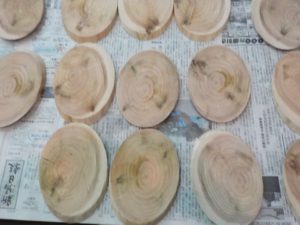 今回の活動はさんぽく会館を会場に、杉材を使ったウォールプレート作りでした。