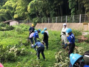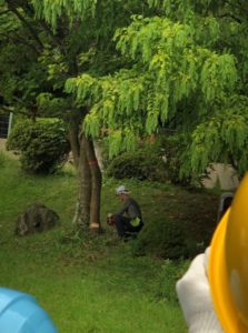 履いて伐採すること。その後に大きな枝をを鋸で小さく切る作業を行う説明をして頂きました。