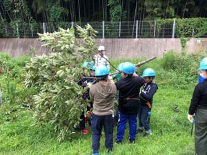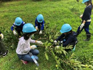 小学生5年生、35名による枝切作業