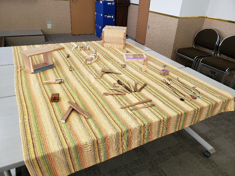↑講師の福島氏が製作された木工品の数々