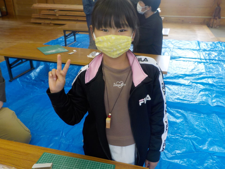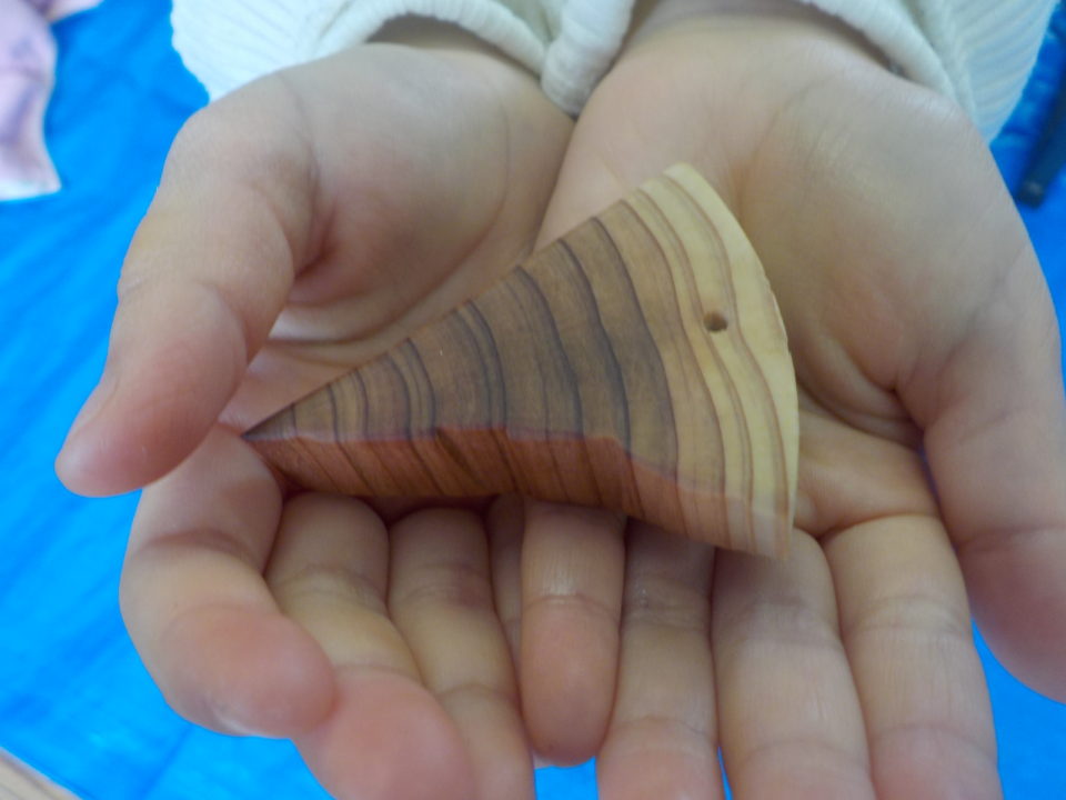 今回は、当組合で主に扱っているスギを用いてお守りづくりにチャレンジしてもらいました。
