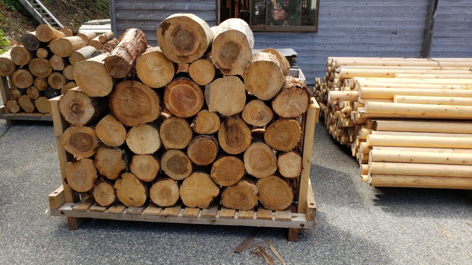樹種は主に、杉がメインで、丸太(短コロ)は使いやすくするために30~40㎝にカットしました。