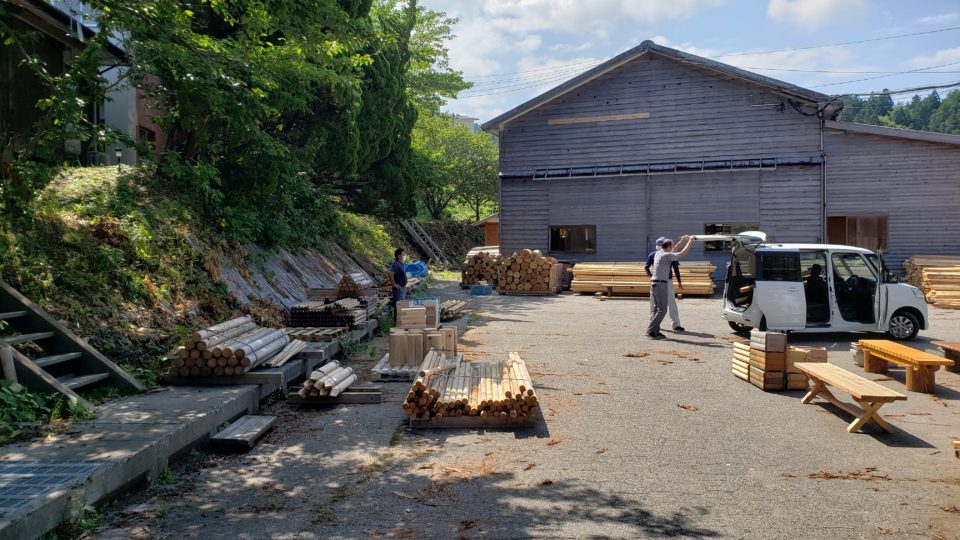 今回は前回売り出しをした側板、桧杭木、杉丸棒杭木、各種端材の他に、木製ベンチや、プランターカバー等の