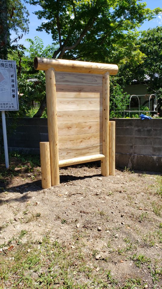 ↑こちらが新規製作をした看板です。旧看板よりも主柱を太くし、添え柱をプラスしたことで安定性を向上させました。