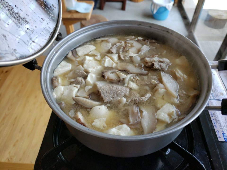 調理は東海林が担当、シイタケ以外の具材は心優しい某課長から提供してもらいました。