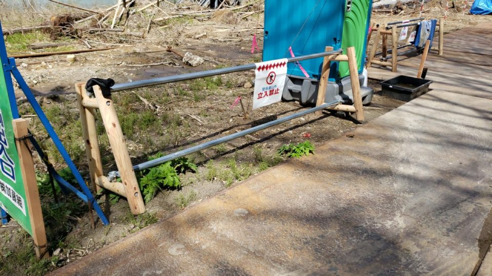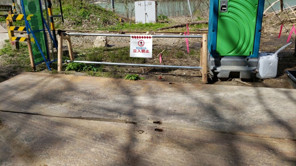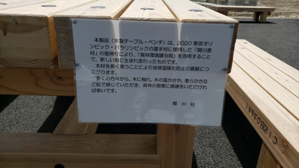 バリケードの納品先が関川村の近くだったので、昨年度末に関川村からの依頼で製作したオリパラレガシー材を使用したテーブルとベンチ現況を見てきました。