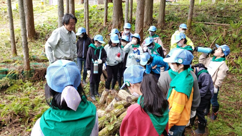 駒打ち終了後は、小田さんの所有する山林でしいたけの収穫体験をしました。