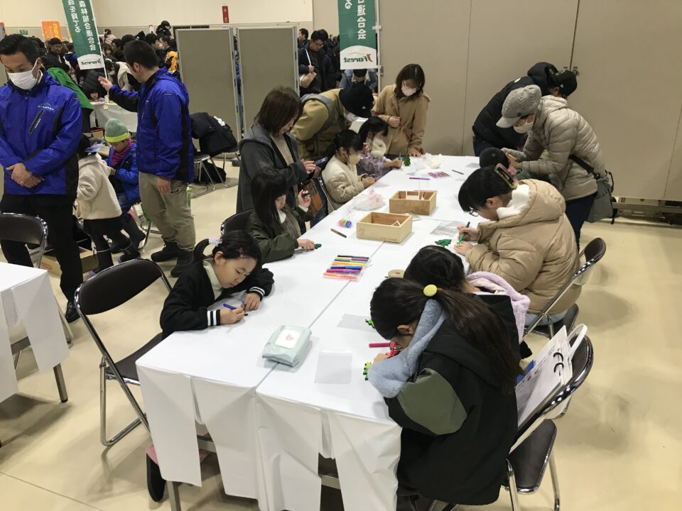じゃんけん大会では、当組合よりいわふね杉の本立てと木製のつみきを提供させていただき、多くの方にPRをすることができました。