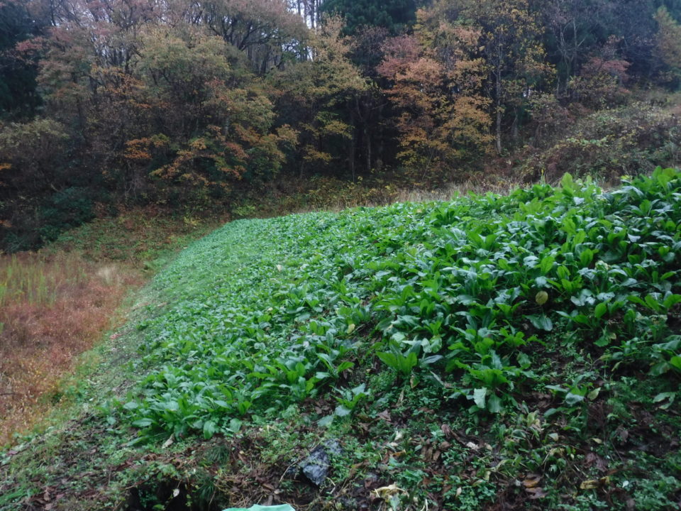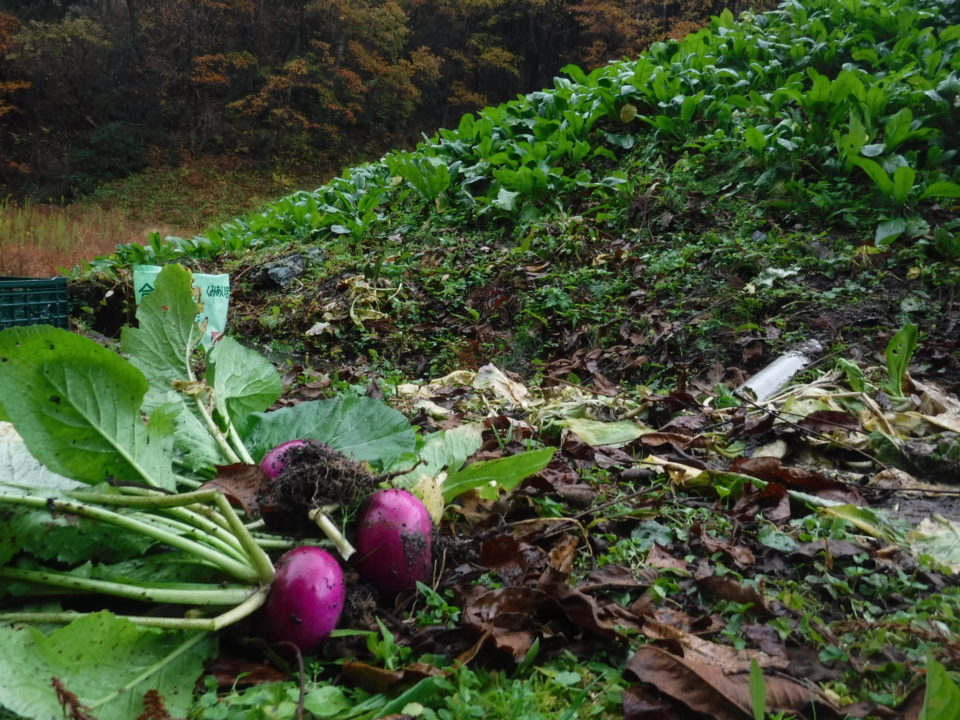 緑の少年団では8月に焼畑体験を行い、今回は赤カブを収穫しました。