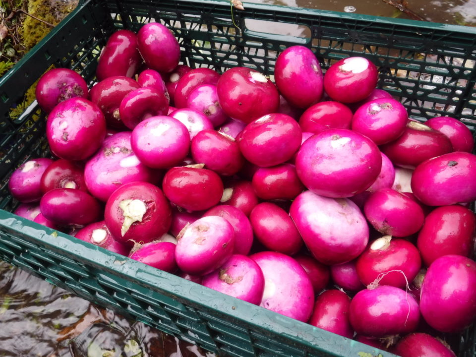 大きな赤カブが収穫できました。今年は不作といわれていましたが、団員のみなさんの