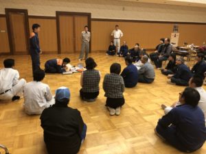 分かれて実際に心肺蘇生と人工呼吸の体験、AEDの操作等を教えて頂きました。