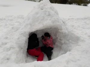 最後の活動は、北黒川集落へお邪魔し、かまくらづくりと