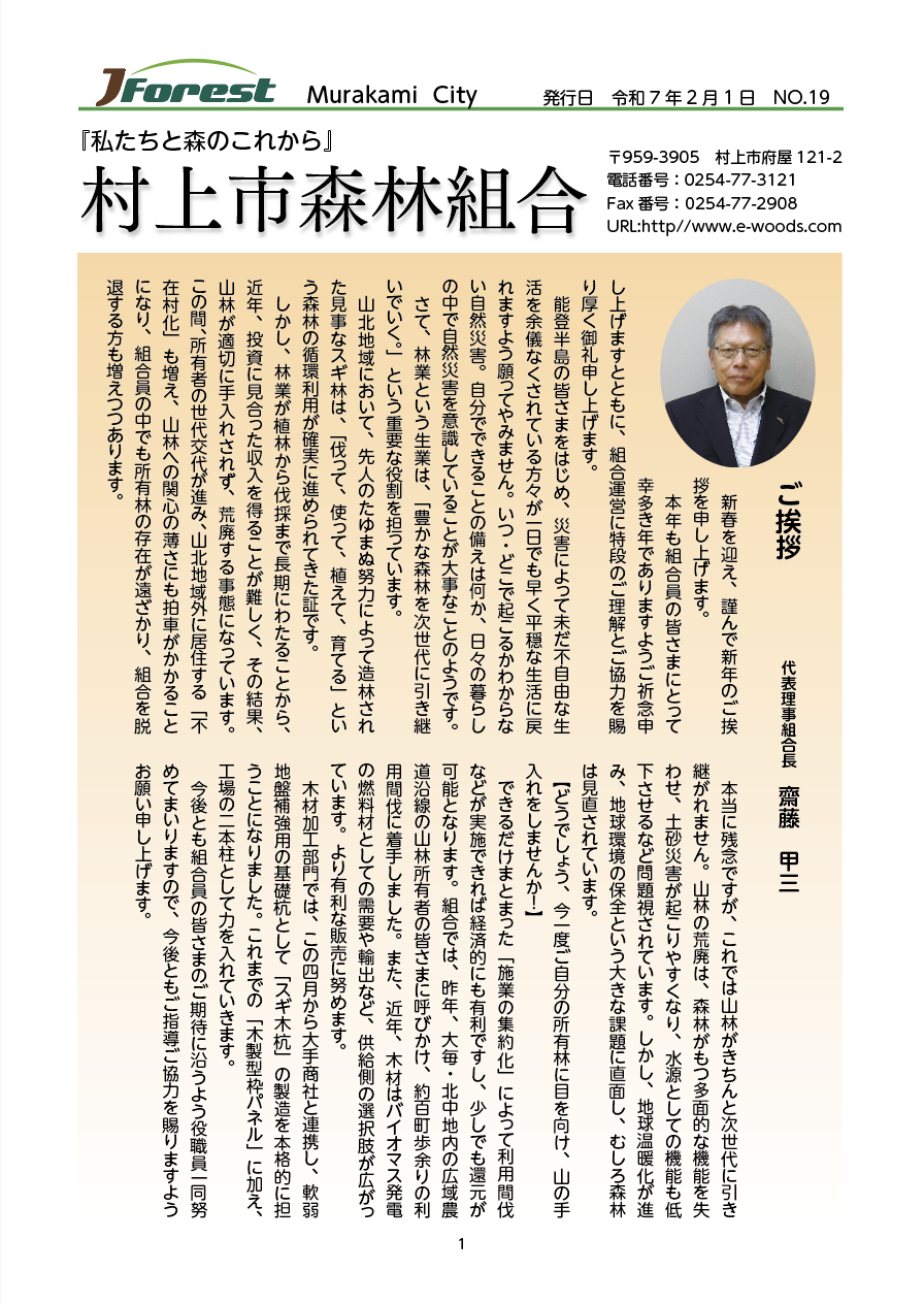 村上市森林組合会報紙19号を発行致しました。