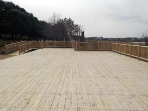 H31年3月下旬、昨年末から製作をしていた鳥屋野潟公園のウッドデッキが完成しました。